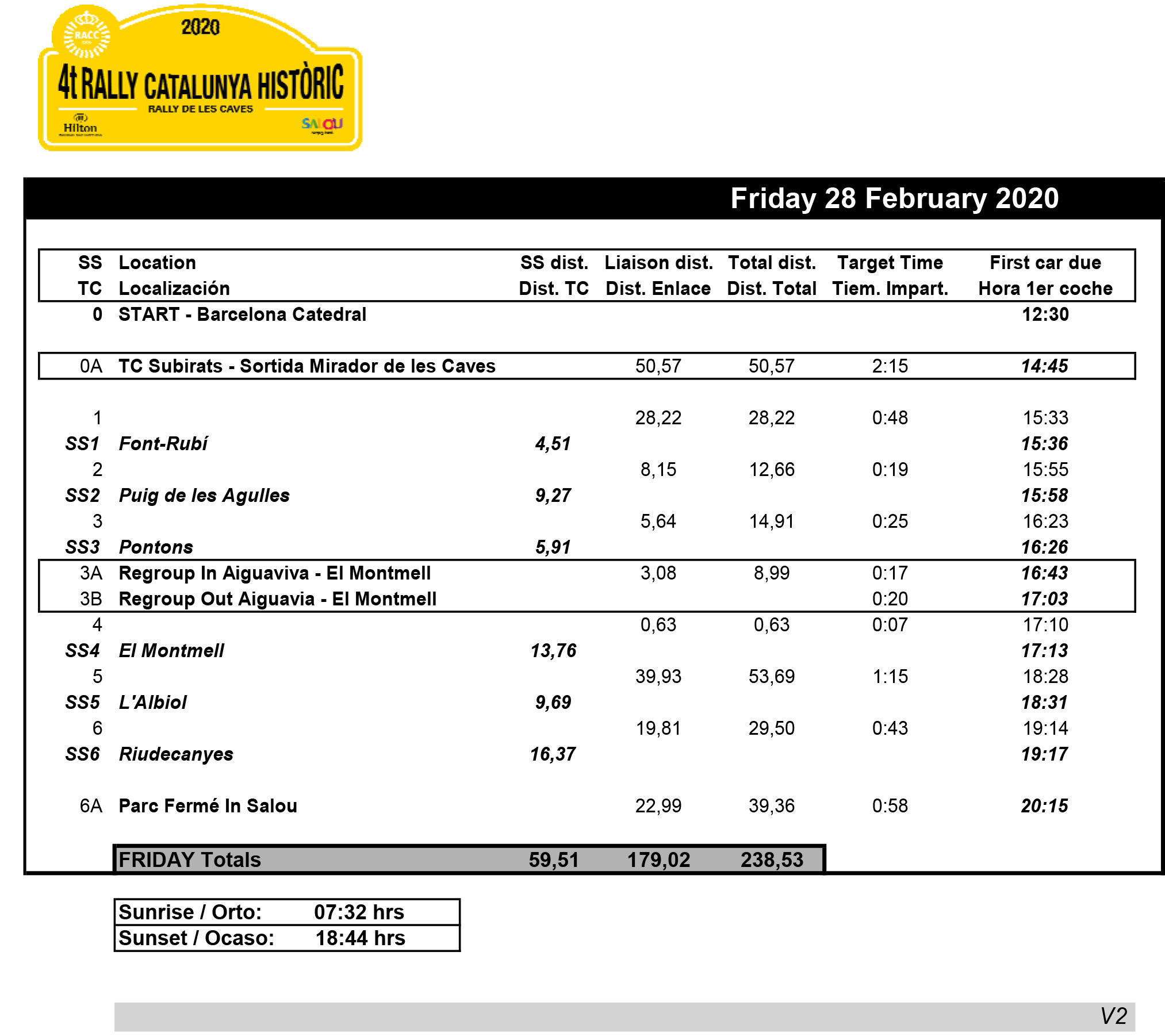 Rally Catalunya Històric - Etapa 01 (horaris)