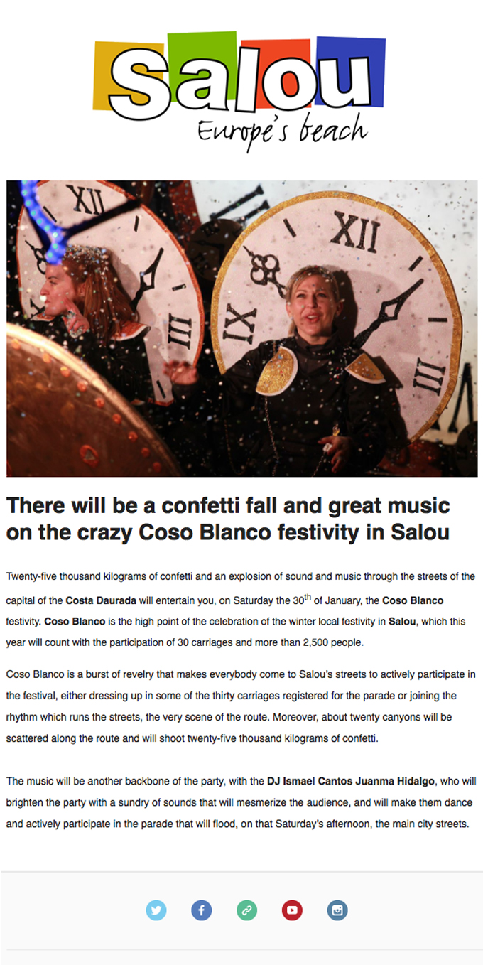 You are here: Home / Professionals / Newsletters / There will be a confetti fall and great music on the crazy Coso Blanco festivity in Salou